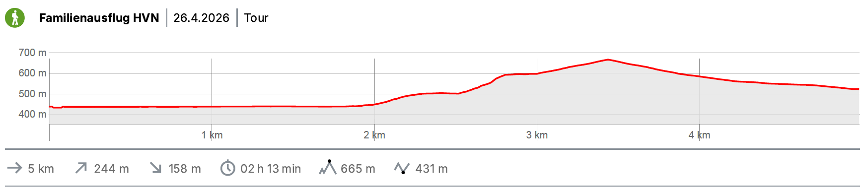 - Strecke: 5 km, 244 m ↑ / 158 m ↓
